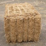 Botte de paille défibrée (hachée) en gros format rectangulaire de 220 kg, destinée principalement à la litière des animaux d’élevage.