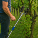 Grâce à son système de brosses interchangeables et à sa perche télescopique en aluminium, elle garantit un travail ergonomique, efficace et sans effort, aussi bien sur les vignes jeunes que sur les vignes adultes.
