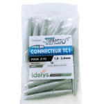 Le connecteur TC se distingue par sa mâchoire métallique emprisonnant le fil, son profil longiforme pour éviter tout dépassement — réduisant ainsi les risques de blessures ou d’accrochage par les outils — et son corps en aluminium allié à des mâchoires en acier galvanisé et un ressort inox, garantissant une durabilité hors pair.